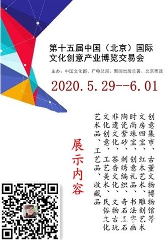 2020北京国际文化创意产业博览交易会(北京文博会)定于5月29日至6月1日在北京中国国际展览中心隆重召开,展会预设展位2000个,预计展出面积60000平方米,邀请专业观众10万人次,展会以“文化艺术、创意生活” 为主题,推动原创艺术为宗旨,致力于展现工艺美术、文化艺术,文化+,文化创意、红木文化、非遗文化的深层内涵和中国文化的丰富多彩,集聚近万件国内外艺术精品集中展示,展会引来了众多名家会所,专业艺术机构,业内收藏名家,艺术投资者的高度关注。